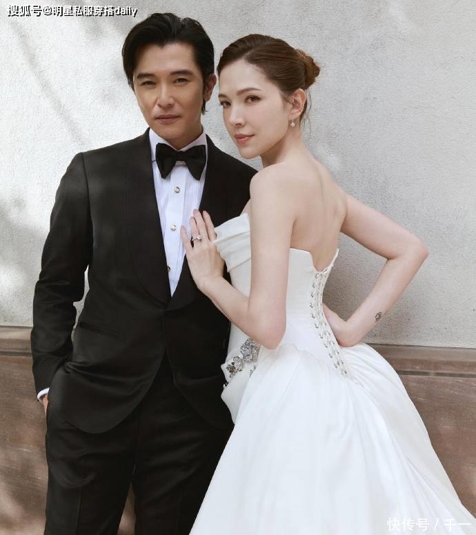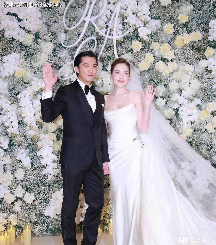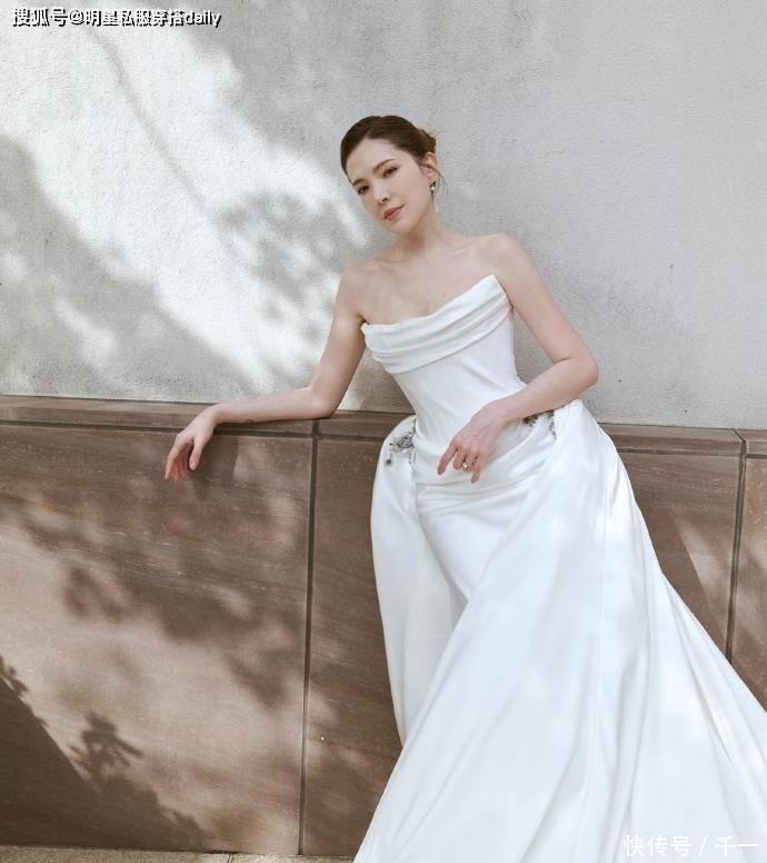 皮肤白皙的许玮甯穿上白色混色,抹胸设计和收腰设计,让如女神一般!不得不说,许玮甯对身材的管理真是太棒了,虽然刚刚生娃不久,但是看穿婚纱的许玮甯,小腹平坦一点都没赘肉,恢复的太好了!